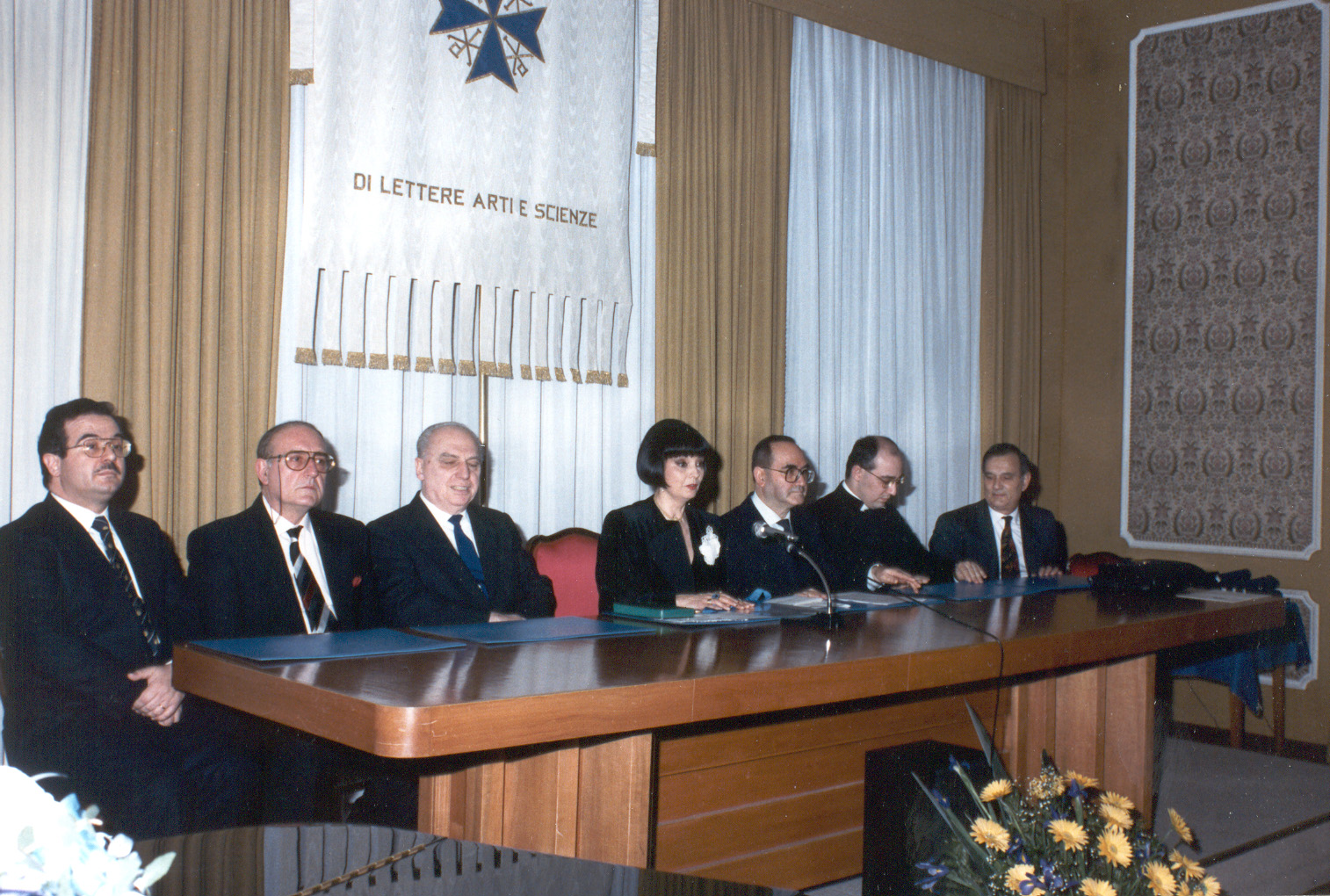 da sin. Da sin. Avv. Mascioli, Dr. V. Bartolucci, Se Amb. W Gardini, Pr. Stefania Angelo-Comneno di Tessaglia Presidente, Prof Padre C. Capizzi, Don L. Casolini, Gen. F. Ferrari