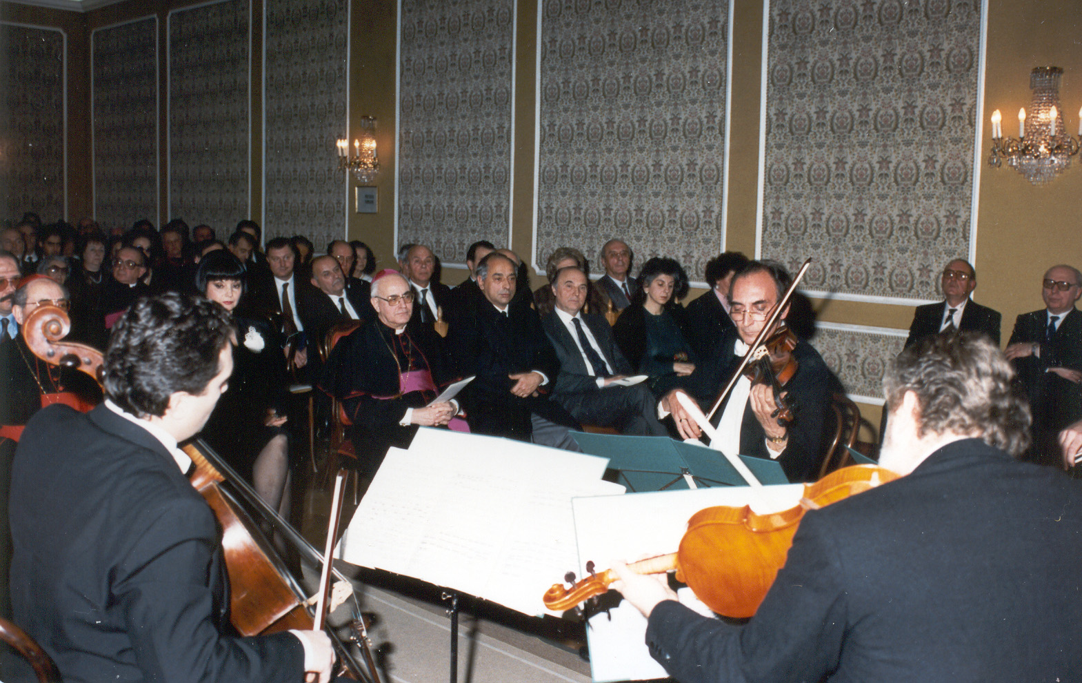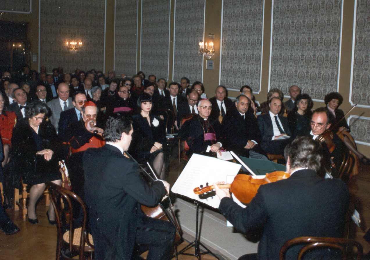 Esecuzione del Quartetto d’Archi di Roma composto da Vittorio Di Lotti 1° Violino; Stefano Di Lotti 2° Violino; Aldo Giovagnoli Viola; Mimmo Chirivì Violoncello.