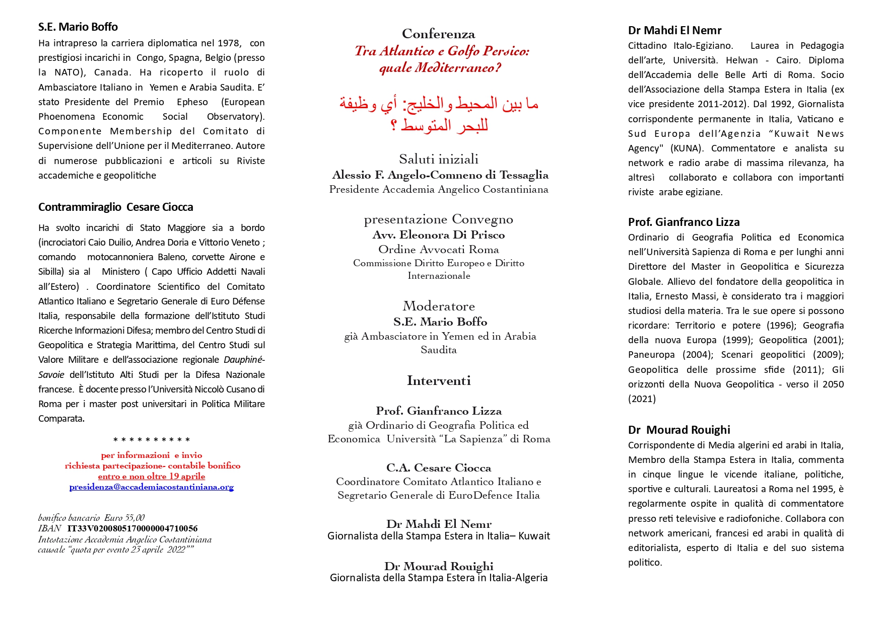 Conferenza Tra Atlantico e Golfo Persico: quale Mediterraneo? ما بين المØÙŠØ· والخليج: أي ÙˆØ¸ÙŠÙØ© Ù„Ù„Ø¨ØØ± المتوسط ØŸ