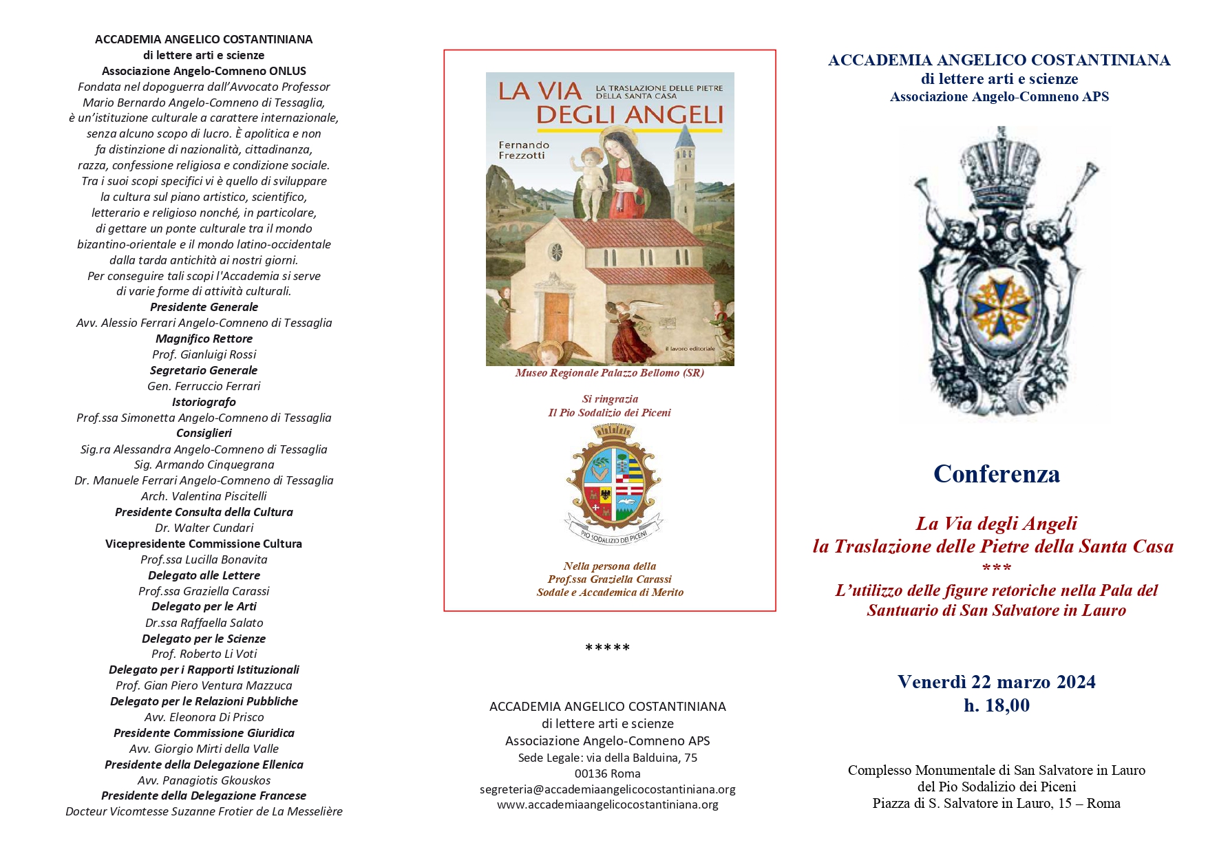 presentazione del libro: "La Via degli Angeli - La Traslazione delle Pietre sella Snata Casa" di Fernando Frezzotti edito da il Lavoro Editoriale