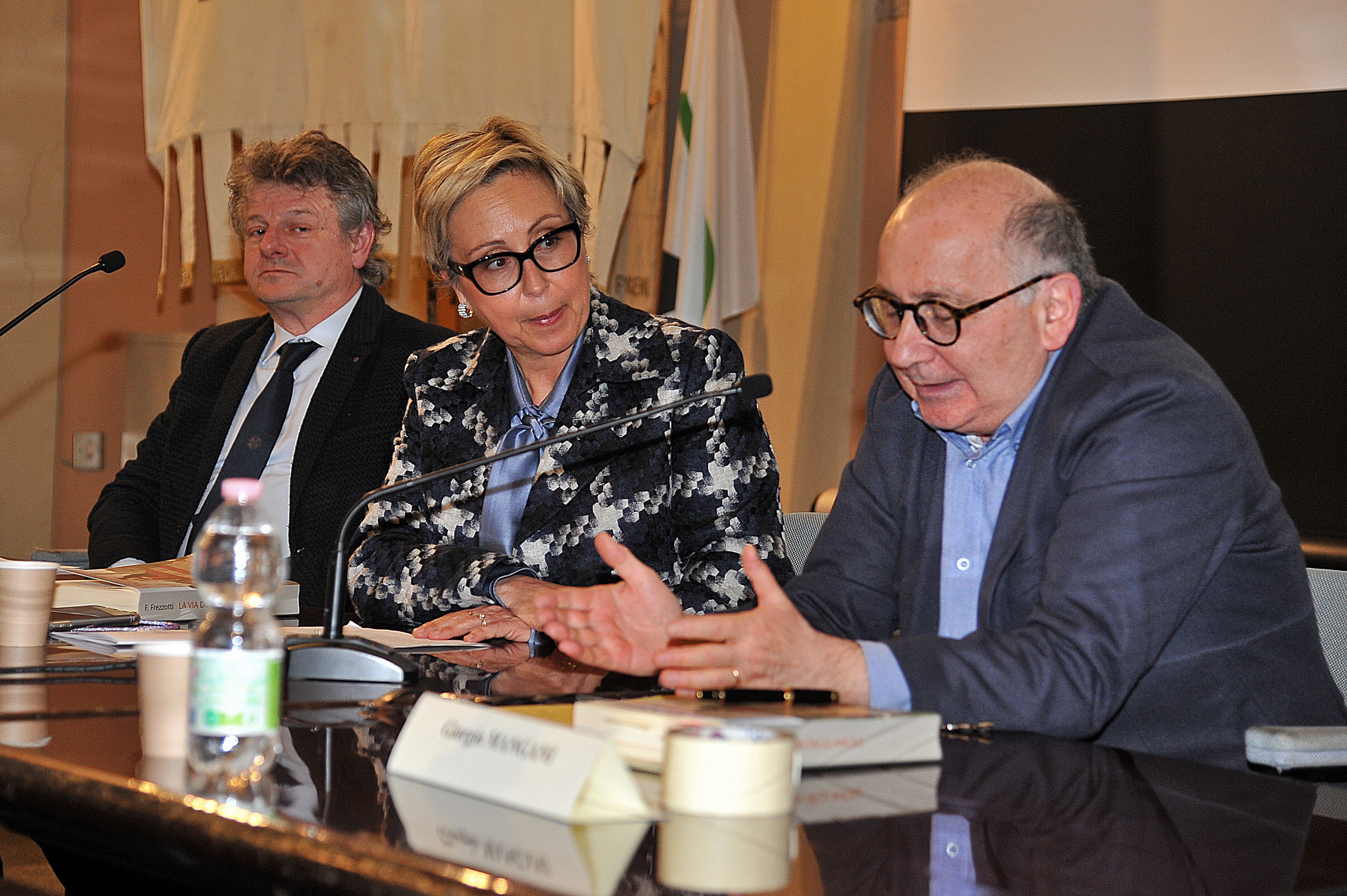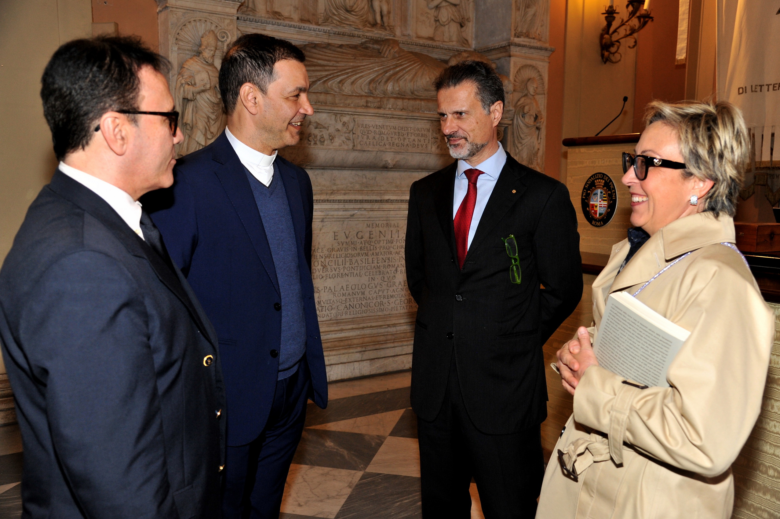 da SX: la dott.ssa Ilaria Pagani, Vicedirettrice della Riv. "Studi sull'Oriente Cristiano"; l'autore del libro Fernando Frezzotti; l'Editore Giorgio Mangani; il Presidente dell'Accademia p.pe Alessio F. Angelo-Comneno di Tessaglia.